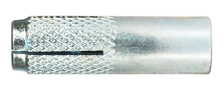 Steel expansion sleeve with internal thread, white galvanized. Substrate: uncracked concrete, natural stone. Advantages - properties: very quick and easy installation - just a hand nailer and a hammer, small anchoring depth shortens the time needed for installation and allows you to reduce work costs, suitable for installation using screws with metric thread or threaded rods, allows for disassembly of the element and possible reassembly, possibility of embedding the anchor flush with the surface of the substrate or deeper, anchors up to M12 in size are perfect for installing suspended ceilings. Material: galvanized steel, white galvanized. Examples of application: fastening of air conditioning, ventilation, water supply, heating, sanitary installations, pipelines, cable ducts, pipes, ceilings and suspended structures, scaffolding, grates, barriers, gates, shelves, screens, steel structures, rails, supports, etc.