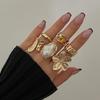 New Irregular Exaggerated Metal Flower Open Rings Women Elegant Baroque Imitation Pearl Ring Jewelry Accessories