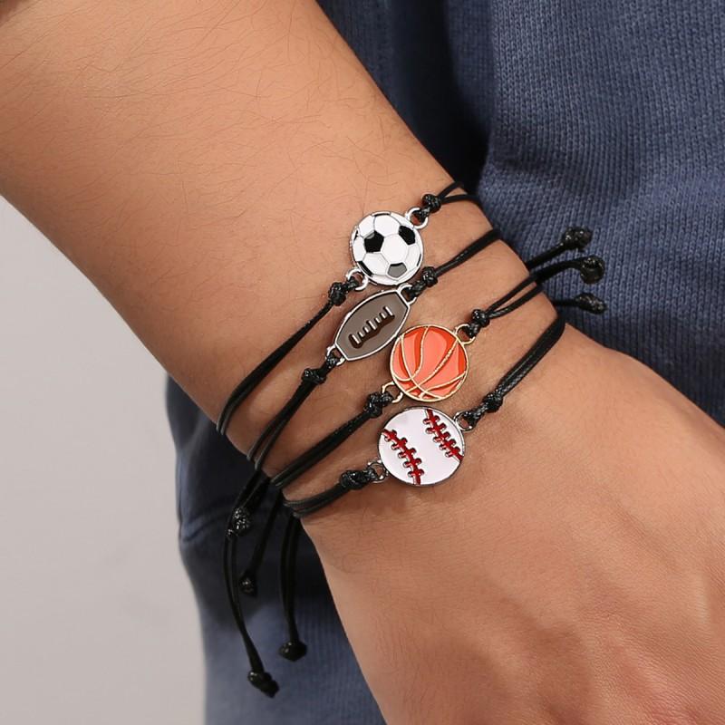 Fashion Football Basketball Baseball Braided Bracelet Adjustable Wrist Rope Unisex Couple Bangle Students Sports Match Souvenir