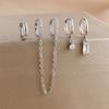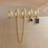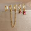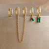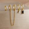 4pcs Fashion Colorful Zirconia Chain Square Earrings Set for Women Two Hole Round Circle Gold Color Hoop Earring Wedding Jewelry