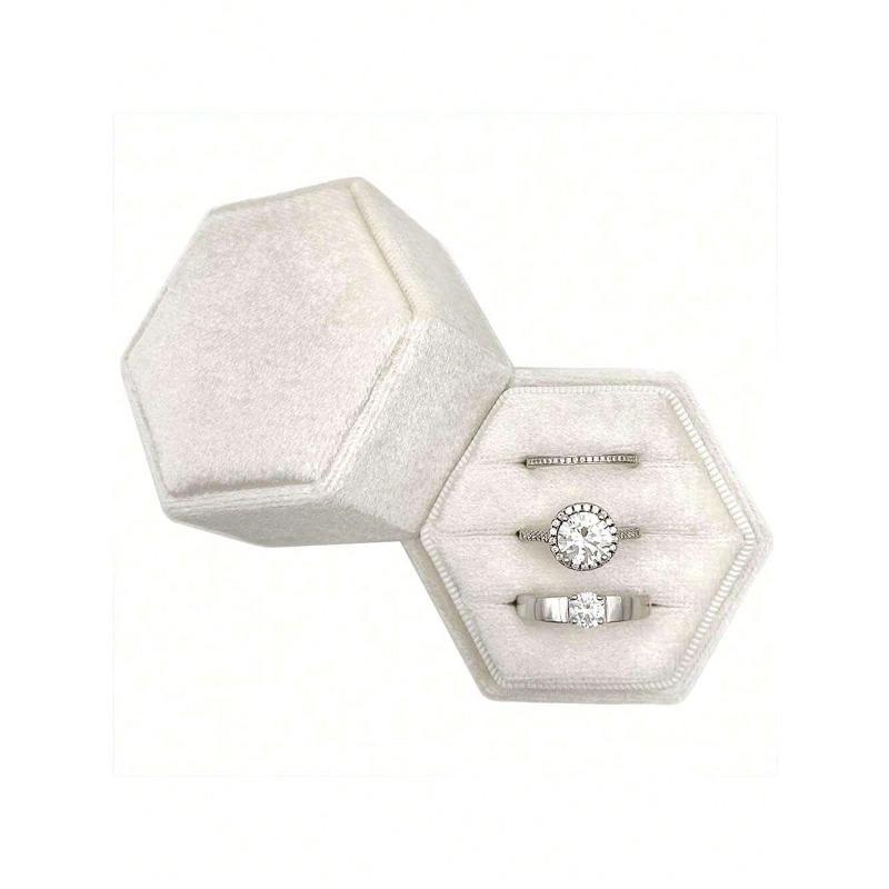 Velvet Ring Box, Hexagon 3 Slots Triple Slot Ring Box, Wedding Day Ring Box For Wedding Ceremony Wedding Ring Holder Ring Box