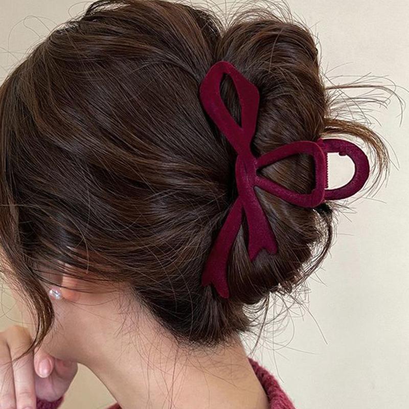 New Red Velvet Bow Hair Clips Autumn Winter Women Hair Claw Clip French Elegant Hairpin Hair Accessories Female Headwear Gift