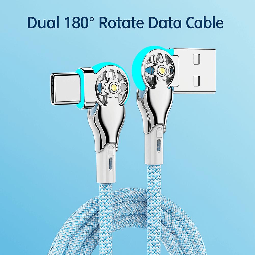 Double Bend Rotation Phone Charging Cable Type C/micro USB Elbow Data Line Phone Accessories