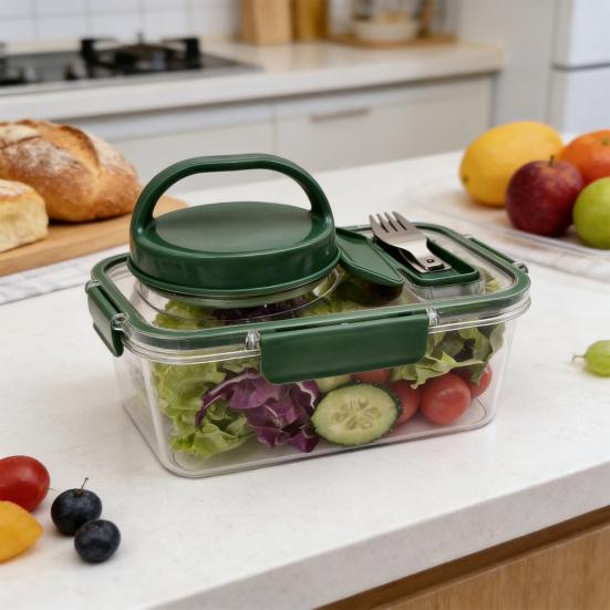 The reinforced lid and independent sealing devices for each compartment ensure professional-grade leak protection, keeping bags clean and dry. Thoughtfully designed with separate sections for fresh veggies, toppings, and sauces, it maintains ingredient freshness and organization until mealtime. Made from durable, food-grade materials, this reusable container supports sustainable daily meal prep with reliable performance.