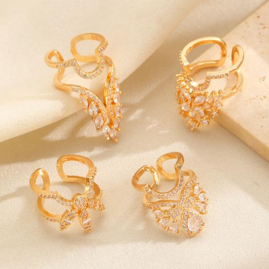 Nail Ring 3D Butterfly Flower Wing Design Detachable Nail Cap Ring Set Sparkling Cubic Zirconia Manicure Ring