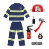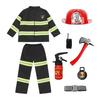 Firefighter costume set offers a complete 8-piece outfit designed for authentic role-playing. Crafted from durable, breathable materials, the jacket and pants feature reflective strips to enhance safety. The set includes detailed accessories such as a helmet, extinguisher, and radio, faithfully replicated for a realistic experience.