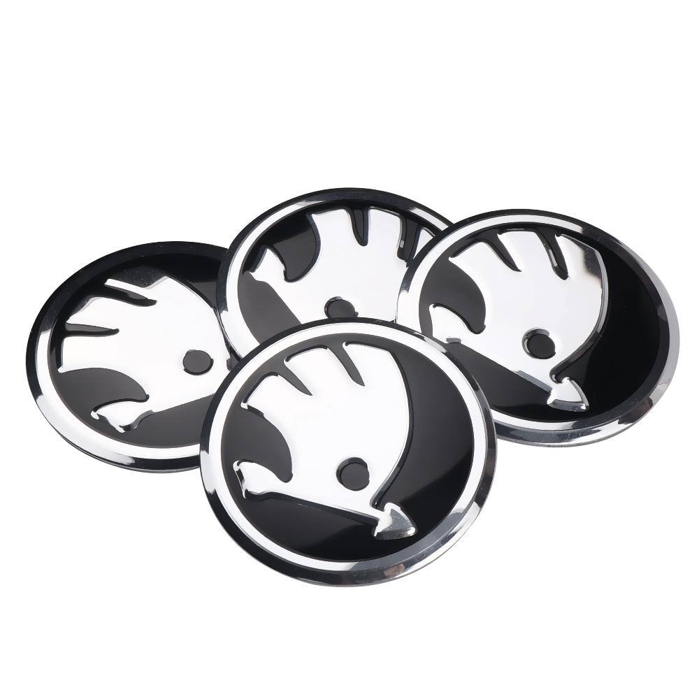 2025 New 4PCS 56mm Aluminium Alloy Auto Car R Wheel Hub Center Caps Emblem Sticker For Skoda Octavia A7 Rapid Fabia Superb VRS V
