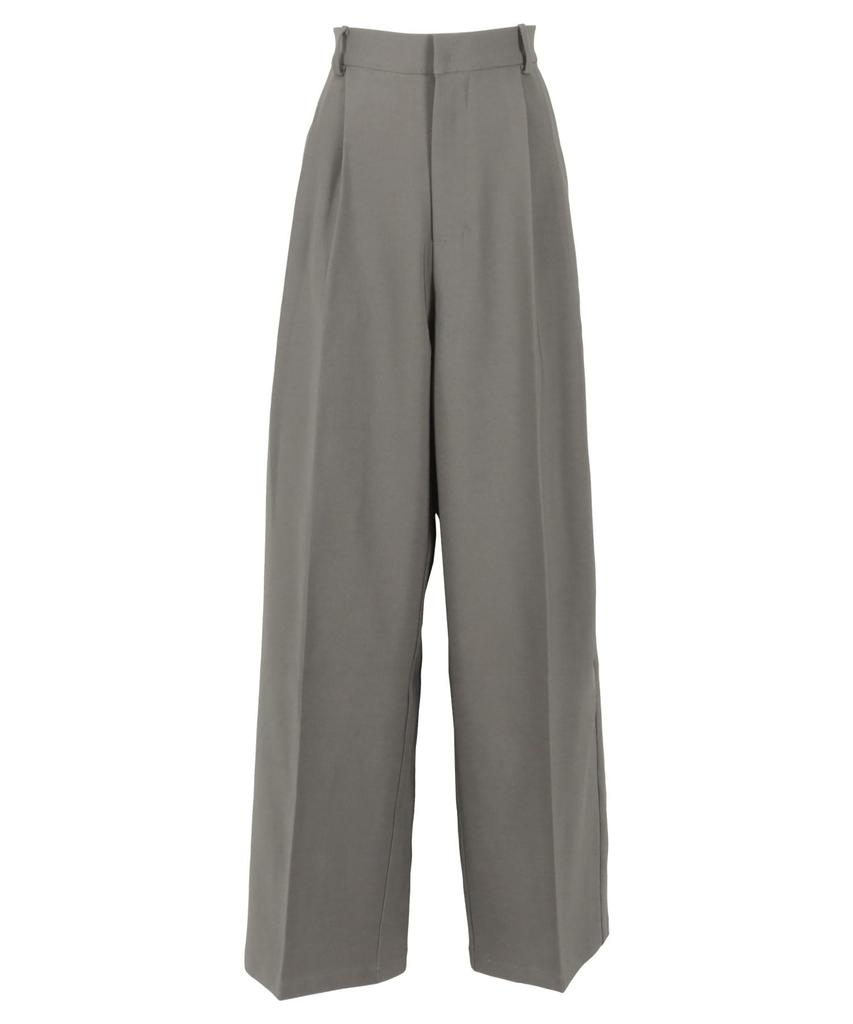 Deep two-pleat pleats on the front provide coverage around the stomach while maintaining a clean, wide silhouette. The center crease accentuates the vertical line, making your legs look longer, and the high waist creates a flattering effect. The waist is elastic only in the back, making it easy to tuck in your top, giving it a relaxed yet neat look.