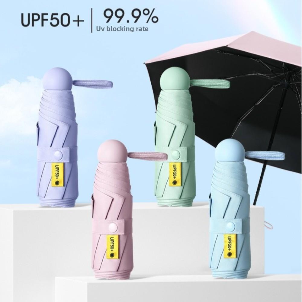 New Mini Capsule Folding Umbrella Vinyl with Box Sun Rain Umbrella UV Sunshade Dual Use Protection Pocket Parasol for Outdoor