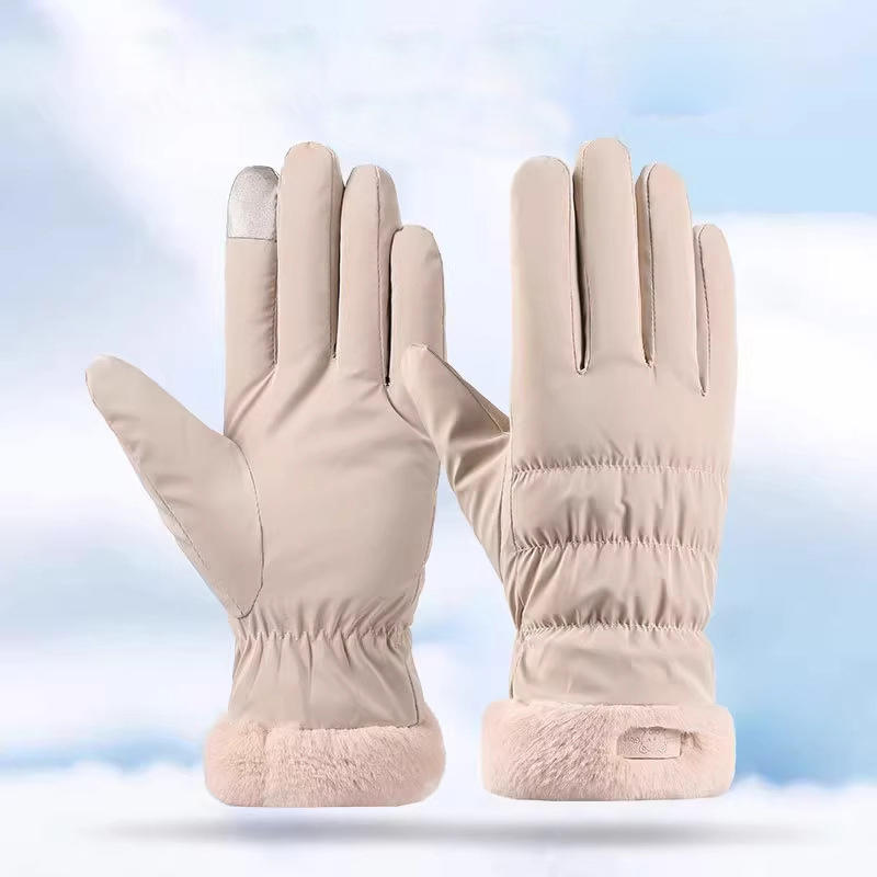 Ski Gloves Women Winter Fleece Thickened Warm Plush Cotton Waterproof Touch-Screen Gloves For Outdoor Riding Mountaineering