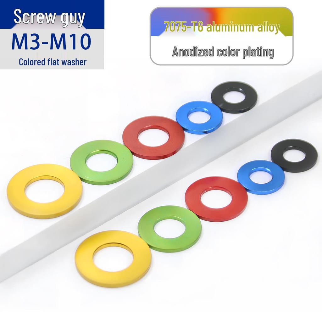 7075 Aluminum Alloy Anodized Round Washer, M3-M10, Decorative & Thickened.