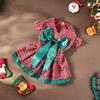 Dog Dress Pet Classic Plaid Skirt Kittens Puppies Dress Cute Little Flying Sleeves Bow Party Princess Dress New Year's Christmas
