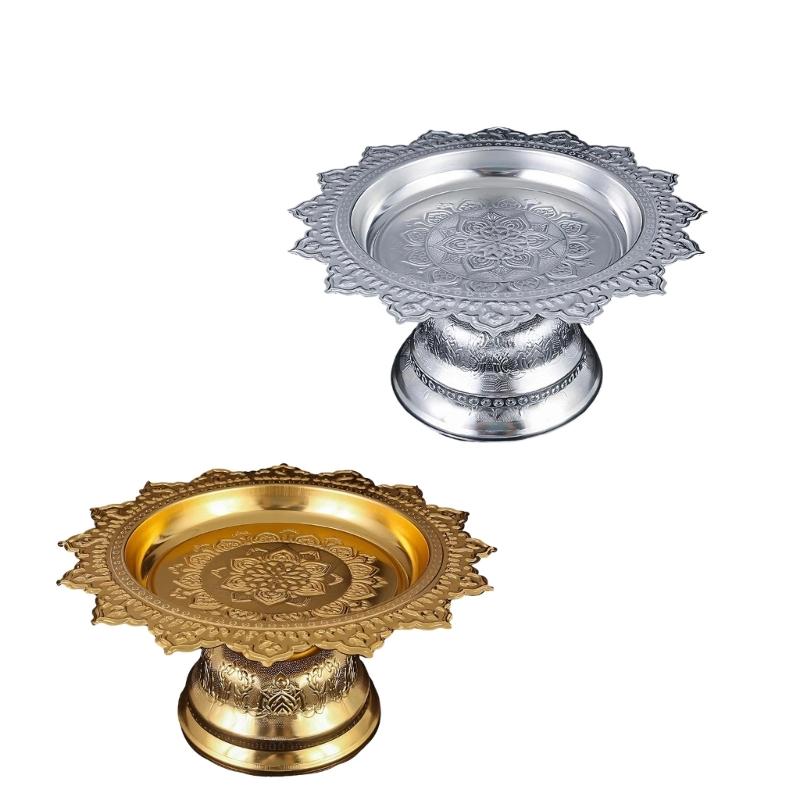 Decorative Alloy Offering Plate with Ornamental Pattern Tall for Religious Ceremonies Home Decoration Highlight