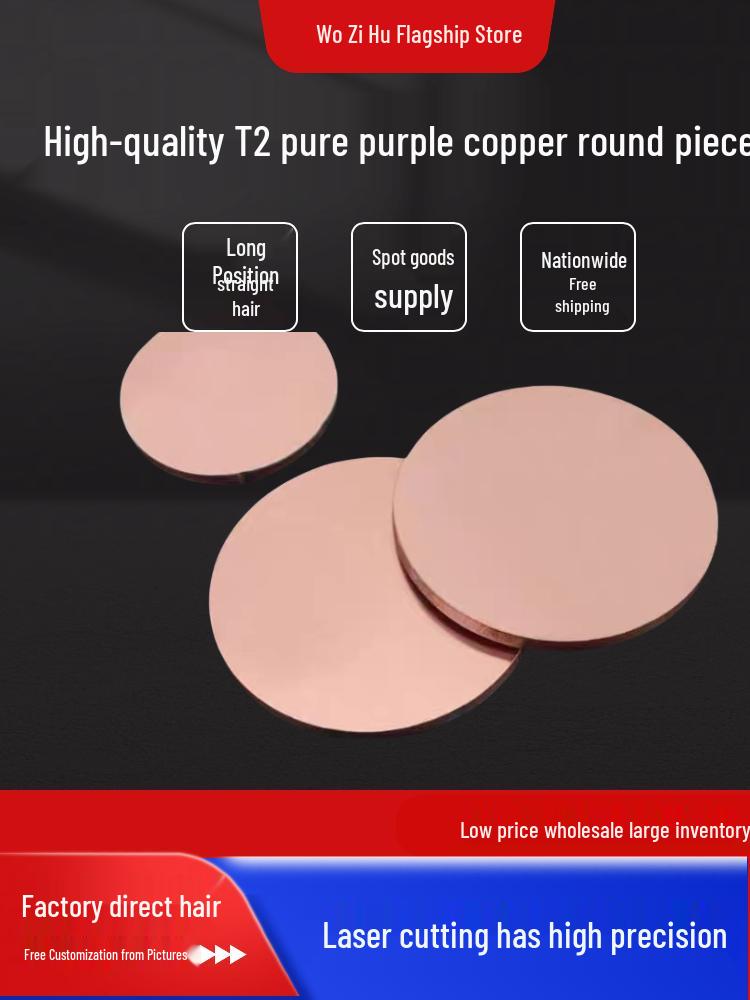 T2 Purple Copper Gasket/Plate: Solid Round, 0.5/0.8/1/2mm, Custom Sizes Available