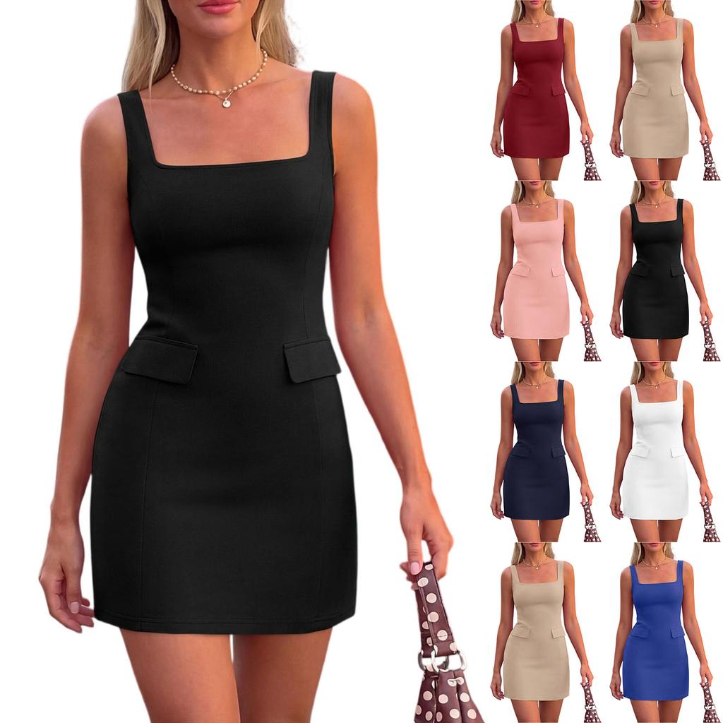 Women's Fashion Sleeveless Square Neck Tank Top Beach Casual Dress