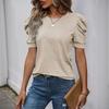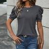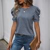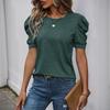 This casual summer T-shirt for women features stylish puff sleeves and a classic round neckline, offering a perfect blend of European and American fashion influences. Crafted from high-quality flat cloth, it ensures comfort and durability. The solid pattern adds a versatile touch, making it easy to pair with various outfits for a casual yet chic look. Its short sleeve design is ideal for keeping cool on warm summer days.