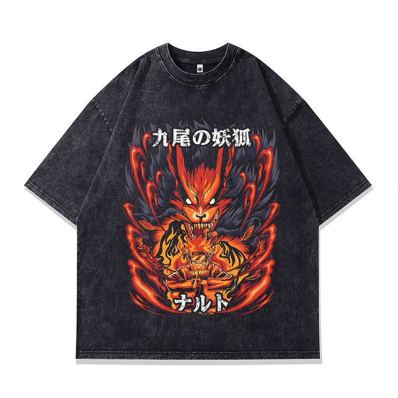 Street Retro Trendy Men'S Clothing Japanese Animation Printing Heavy Cotton Loose Short-Sleeved T-Shirt Men And Women