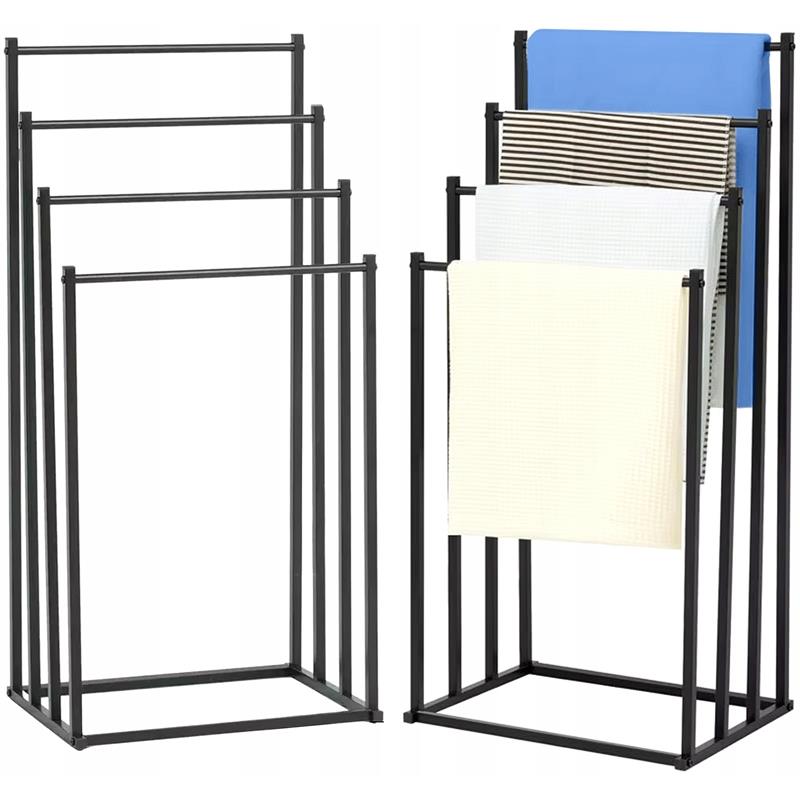 Towel Rack Bathroom Hanger Metal Standing Industrial Black 4 Tiers