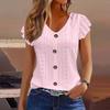 Women Summer Top Eyelet Vacation Short Sleeve V Neck Loose Fit Shirt Spring Fashion Casual Clothes