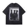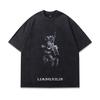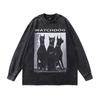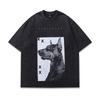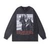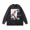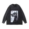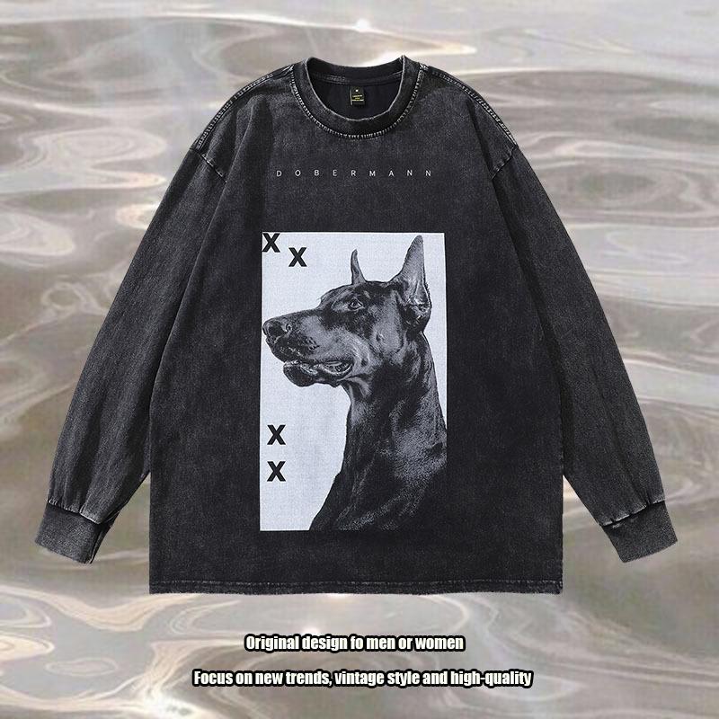 Trendy Brand American High Street Retro Doberman Direct Injection Printing Washed Long-Sleeved T-Shirt Men'S Loose Vintage Top