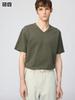 The Uniqlo Japan V-neck T-shirt features a classic design and comfortable fit. Made from 100% cotton, it provides a soft touch on the skin. With its regular fit, it coordinates well with various styles and is suitable for daily wear.