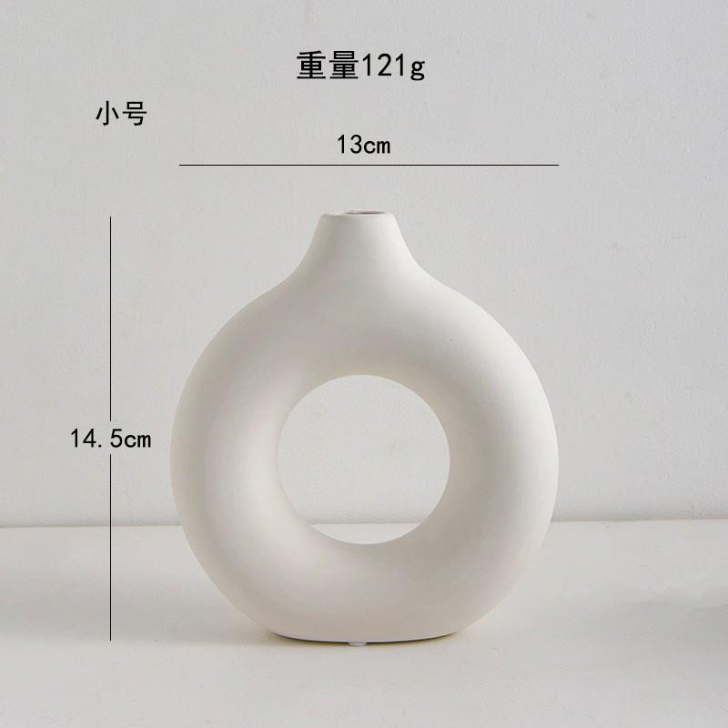 Modern Minimalist Donut-Shaped Vase-Durable Plastic Construction,Easy-Clean White Decorative Vase for Living Room,Bedroom,Office