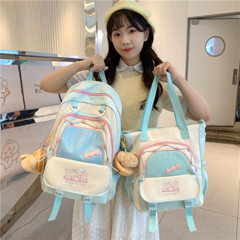 Students Cute Junior High School Students Portable Messenger Bag Large Capacity Casual Color Contrast Class Backpack Travel Bag