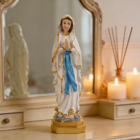 Exquisite Hand-Painted Detailing: Each statue is meticulously hand-painted to highlight the Virgin Marys peaceful expression and tender features. The bright white coat paired with a vivid blue sash creates a striking visual contrast that symbolizes peace and devotion, adding spiritual depth to any environment.