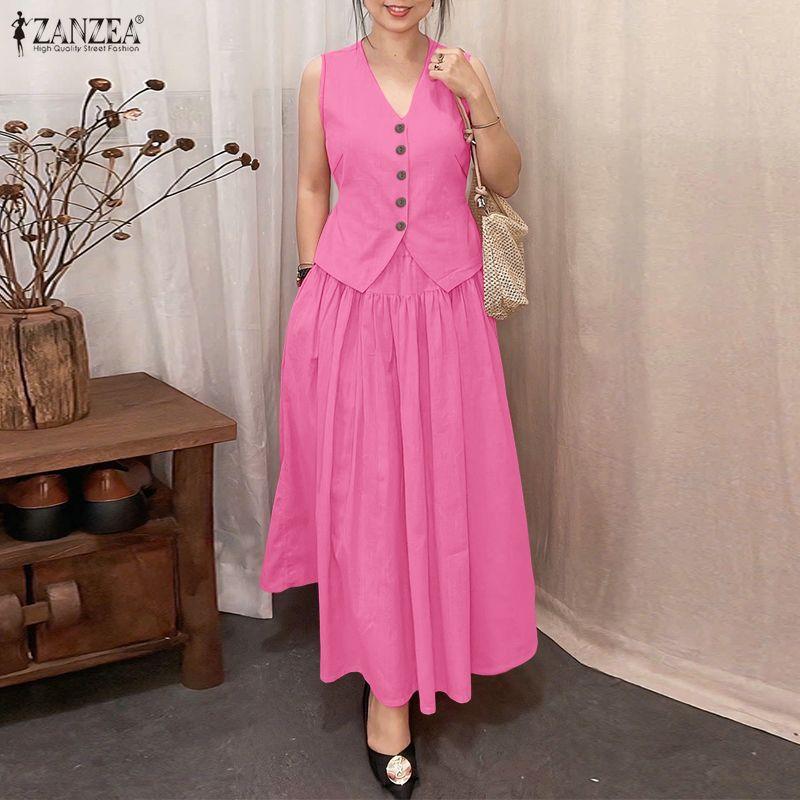 ZANZEA Women Sleeveless Vest Tops and Long Skirts Summer Two Piece Suit Sets