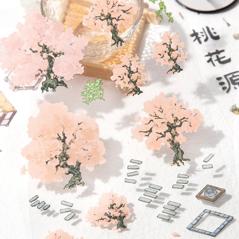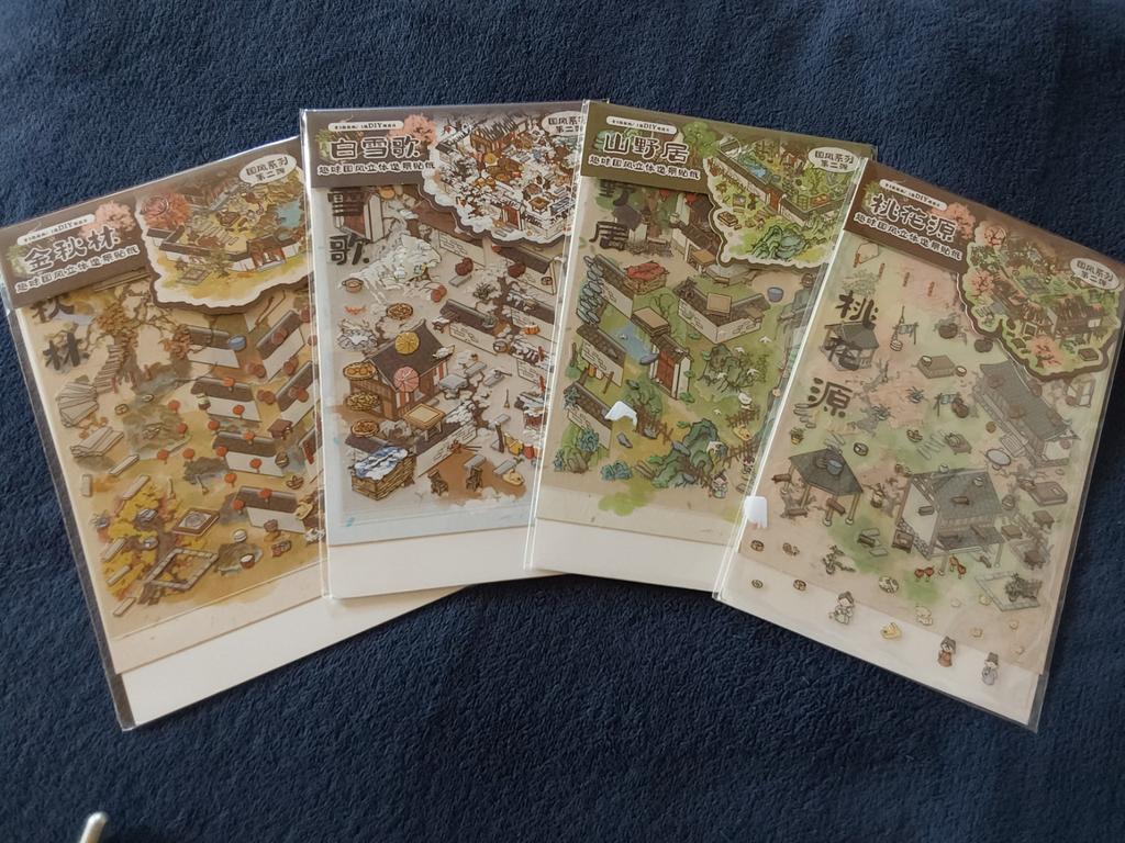 4Sheets/bag PET Fun National Chinese Style Three-Dimensional Landscaping Stickers Fun Small House DIY Scene Decoration Stickers