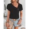 2026 Summer New Oblique Collar Loose Women Blouse Casual Solid Color Shirt Ladies Simple Button Sweet Petal Sleeves Tees Tops Fashion Elegant Clothes