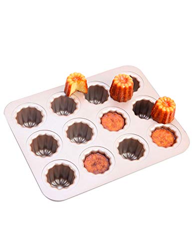 CHEFMADE Canelé Mold, 12 Pieces, Non-sticky Cake Mold, Exterior Dimensions: Approx. 32.5 X 25.8 Cm, Cup Size: 5.5cm