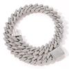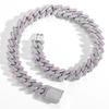 European and American Hip Hop 20mm Rhombus Cuban Necklace Blue Pink Three Rows Full of Diamonds Zircon Men's High Sense Ruffian Handsome Jewelry