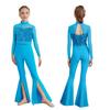 Sequins on the bodice add a sparkle and glamour, making the jumpsuit perfect for stage performances and adding a festive touch to the dance.
