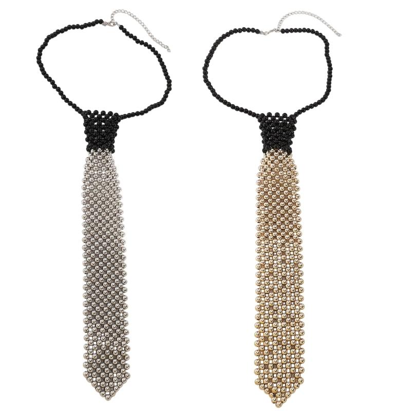 Add highlight to your dress with this elegant necktie featuring layers of pearls embellishments.