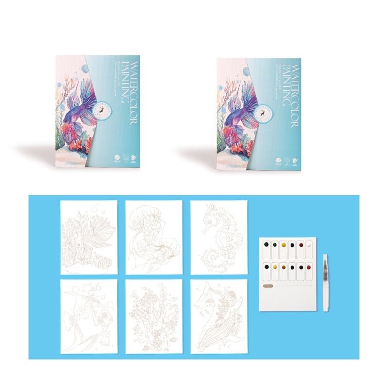 12Sheets Watercolor Painting Paper with and Solid Watercolor Paint and Water Brush Pen