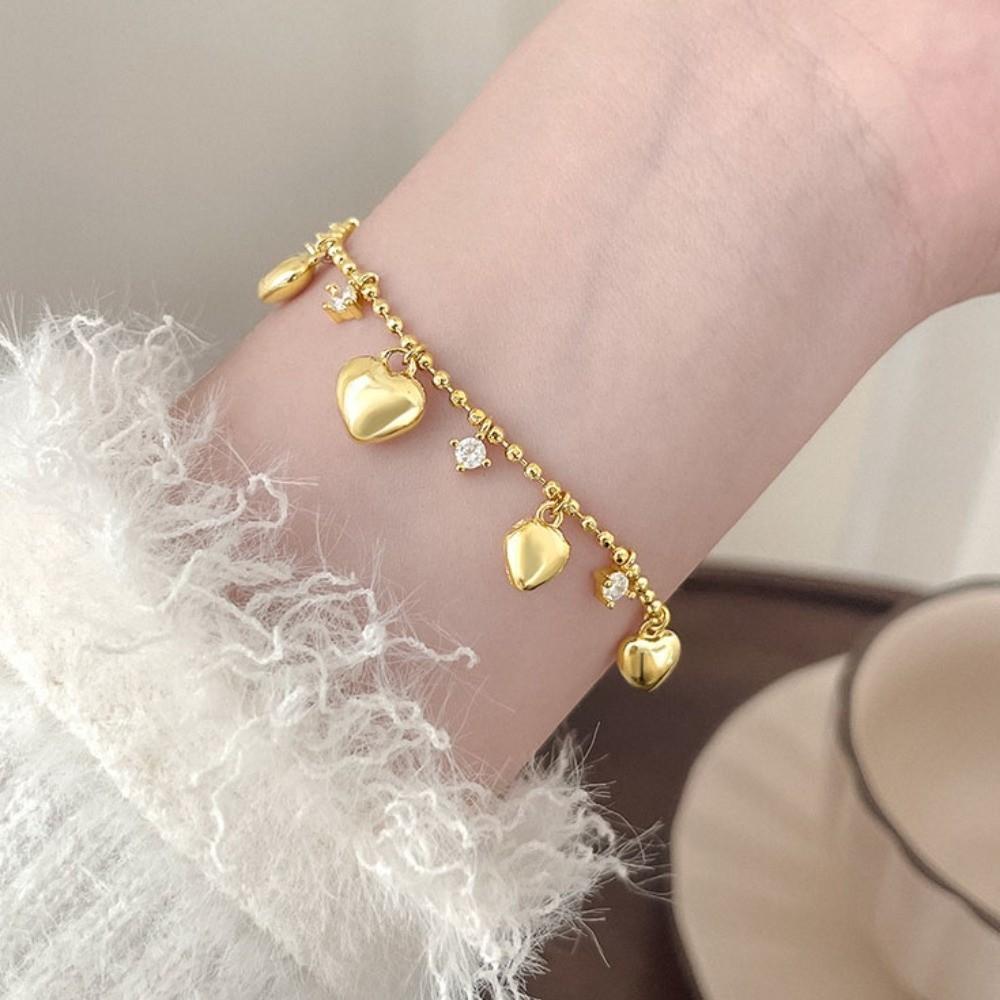 Rhinestone Heart Bracelet Bead Charm Hand Chain Elegant Gold Bracelet Women