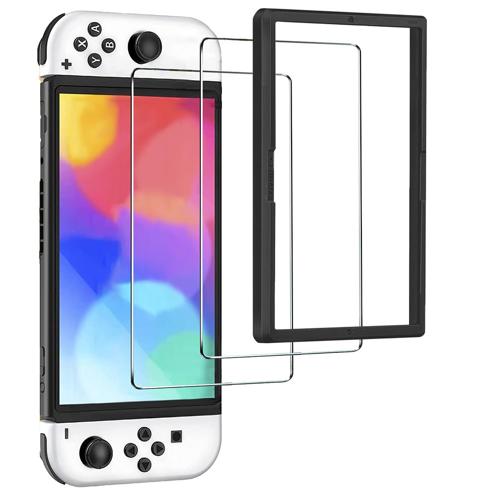Compatible models: Nintendo Switch 7-inch OLED screen protector glass film designed to fit snugly on the screen.