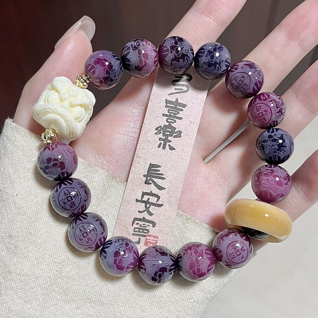 Purple Grape Six Characters Proverbs Bodhi Bracelet Carving Parts Plate Play Bracelet Buddha Bead Rosary Bead Guochao Lion Awakening Bracelet