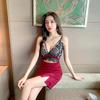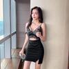 Summer New Niche Design Lace Splicing Tight Body Hollow Low-cut Collar Suspender Hip Dress