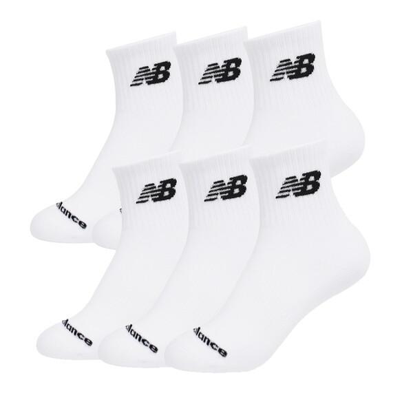 The New Balance Everyday Lightweight Ankle 6-Pack Running Socks LAS51486-WT is a lightweight ankle-length sports sock available in a 6-pack. The color is white (WT) and features a short design. This product is designed as one piece without separate toe sections, providing comfort for high-intensity activities like running and gym workouts without the burden of wearing heavy material for extended periods. It belongs to the sports accessories category under New Balance's sportswear/shoes classification.