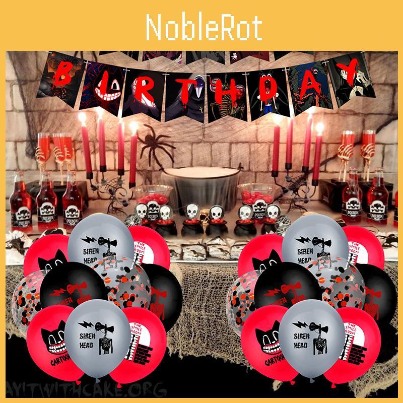 Siren Head Cartoon Cat Horror Theme Birthday Party Balloon Banner Cake Topper Set