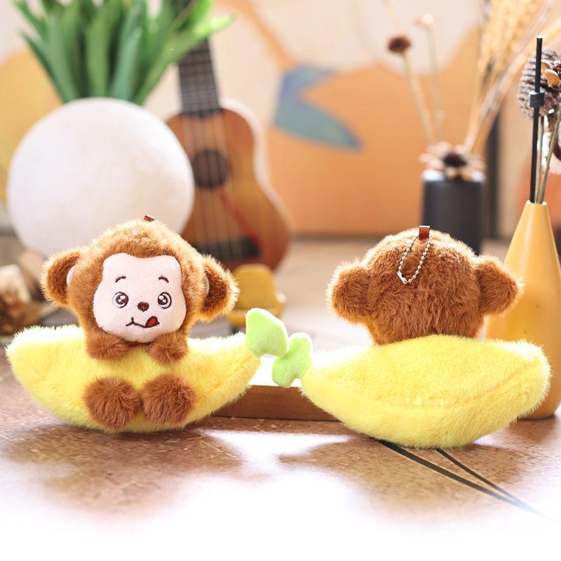 1 Piece Adorable Banana Monkey Keychain Charm Cute Monkey Plush Ornament Soft Bag Pendant For Boys Gifts