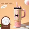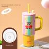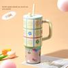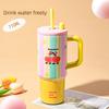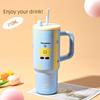 Large Capacity Thermos Cup for Women, Stylish Ice Cup, Cute Cartoon Portable Car Cup with Handle, Giant Straw Water Cup