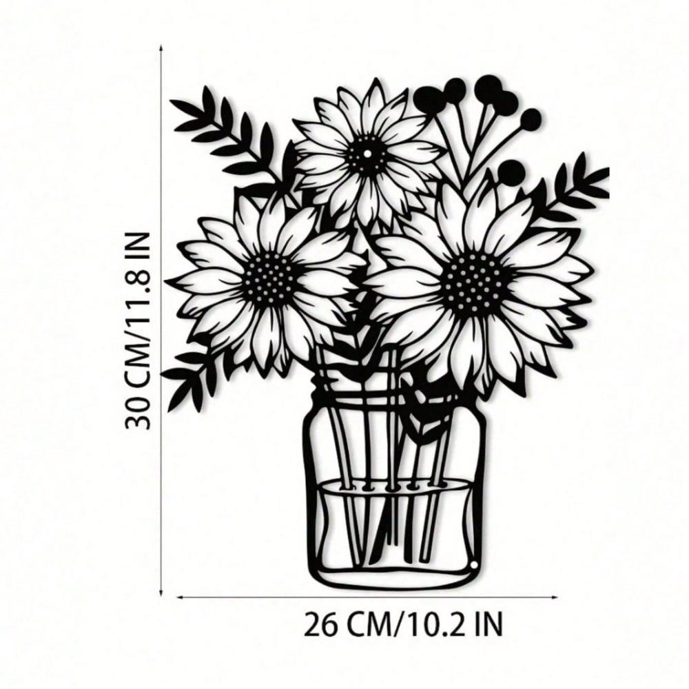 Modern Black Metal Sunflower Lily Wall Vase Set - 3D Floral Sculpture for Living Room, Kitchen Decor, Unique Housewarming Gift