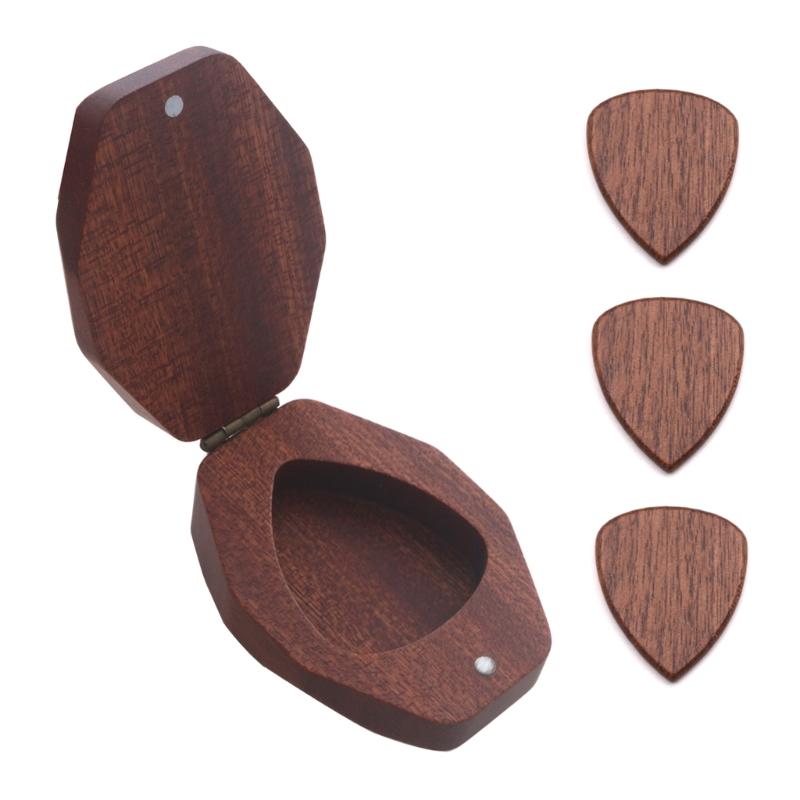 Guitar Pick Box Holder with 3 Pack Wood Guitar Picks, Diamond Shaped Plectrums Case, Bass Guitar Box Musical Instrument
