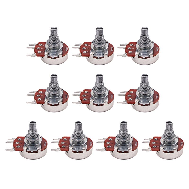 10Pcs Electric Guitar Pots B250K Linear Taper Potentiometer Mini Metric Sized Control Pots Split Knurled Long 18mm Shaft
