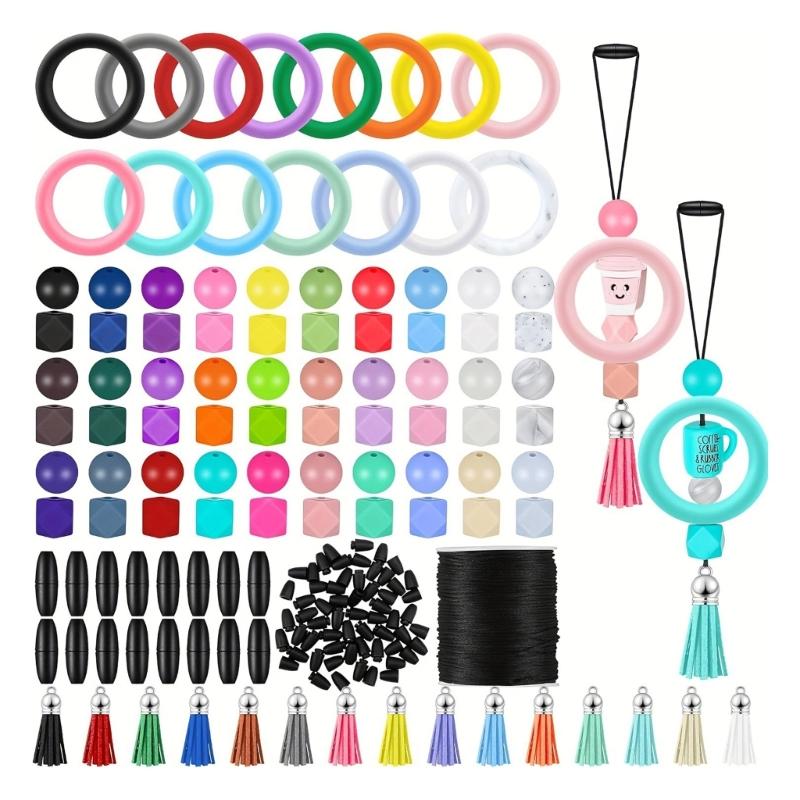 91pcs O Shaped Rings Beadable Silicone Circles with Holes for Pendants and Keychains Practical Keychain Accessories