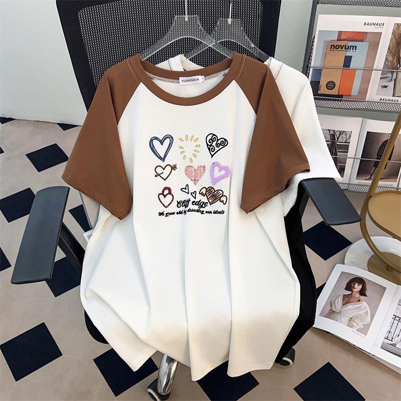 This comfortable and stylish T-shirt is designed for plus-size women, featuring a loose fit and mid-length cut. Made from high-quality cotton, it ensures breathability and comfort throughout the day. The round neckline and short sleeves offer a classic and versatile look, making it a perfect addition to any casual wardrobe. Available in sizes 200, 300, and 350 Jin, it caters to a variety of body types, providing a flattering fit for every wearer.