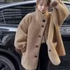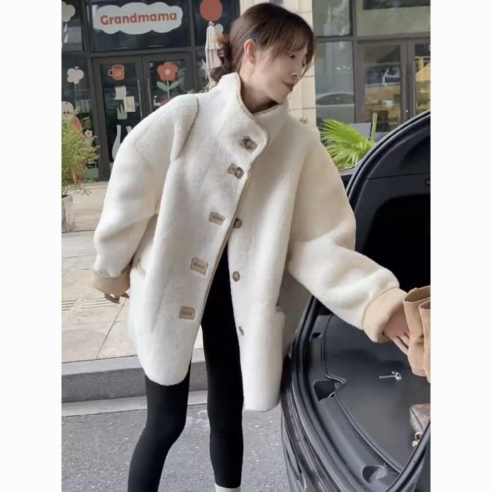 Women's Thick Shearling Stand Collar Jacket - Autumn/Winter, Loose Fit, Warm, Slimming Style